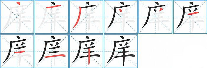 - 问:写"庠"字第9笔是什么笔画?答:竖【