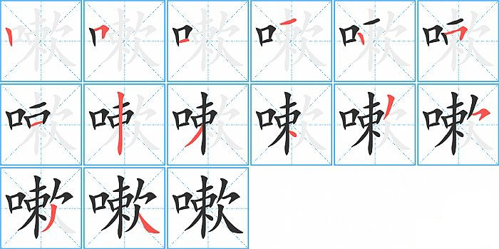 - 问:写"嗽"字第13笔是什么笔画?答:撇【