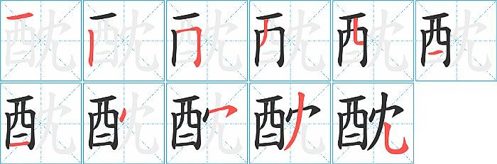 - 问:写"酖"字第10笔是什么笔画?答:撇【