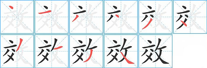 - 问:写"效"字第10笔是什么笔画?答:捺【