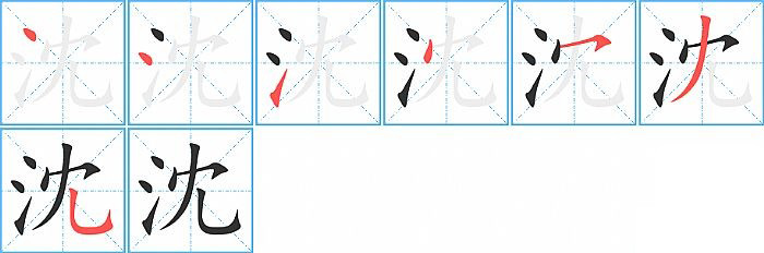 沈的笔画为7画, 笔顺为