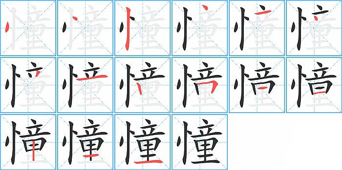 - 问:写"憧"字第13笔是什么笔画?答:竖【