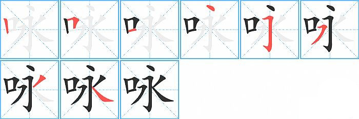 - 问:写"咏"字第8笔是什么笔画?答:捺【