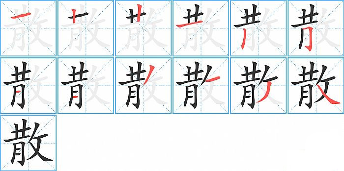- 问:写"散"字第11笔是什么笔画?答:撇【