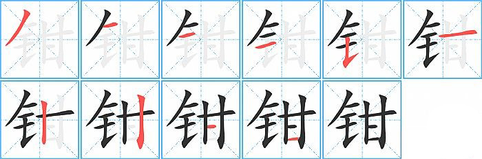 - 问:写"钳"字第10笔是什么笔画?答:横【