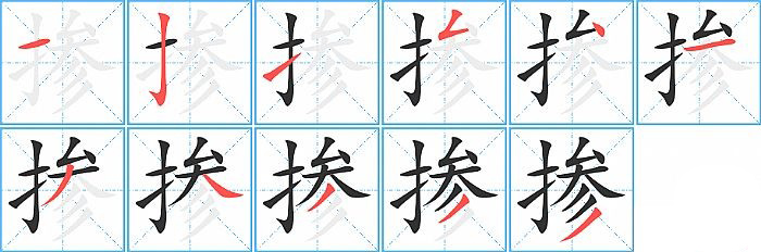 - 问:写"掺"字第10笔是什么笔画?答:撇【