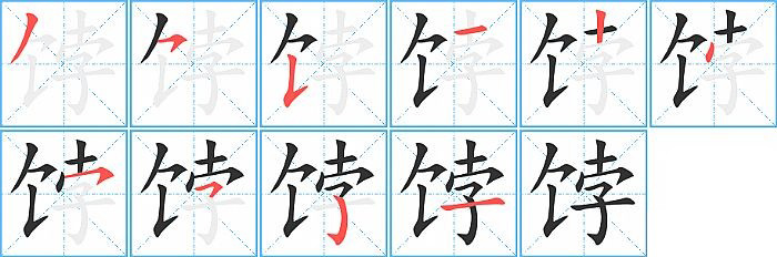 - 问:写"饽"字第10笔是什么笔画?答:横【