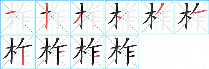 柞的笔画为9画, 笔顺为