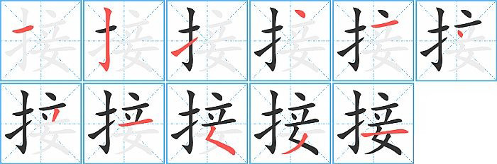 2. 继续,连续:接力。接替。接班。接二连三。再接再厉。