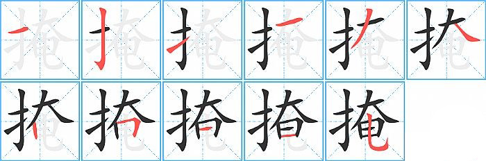 - 问:写"掩"字第10笔是什么笔画?答:横【