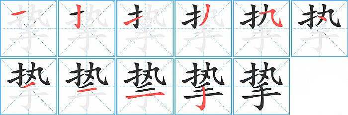 - 问:写"挚"字第10笔是什么笔画?答:竖钩【