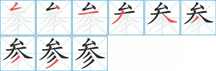 - 问:写"参"字第8笔是什么笔画?答:撇【