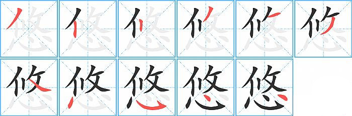 - 问:写"悠"字第4笔是什么笔画?答:撇【
