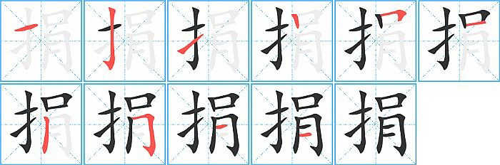 - 问:写"捐"字第10笔是什么笔画?答:横【