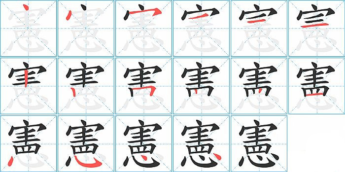 - 问:写"憲"字第14笔是什么笔画?答:斜钩【