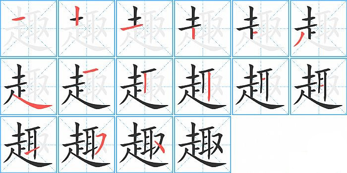 - 问:写"趣"字第12笔是什么笔画?答:横【
