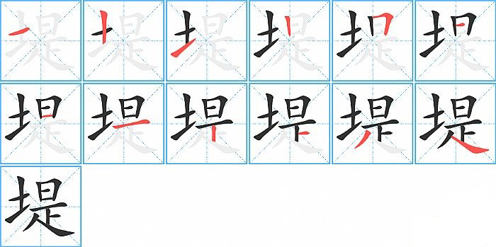 - 问:写"堤"字第12笔是什么笔画?答:捺【
