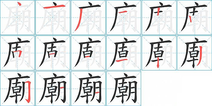 - 问:写"廟"字第14笔是什么笔画?答:横【