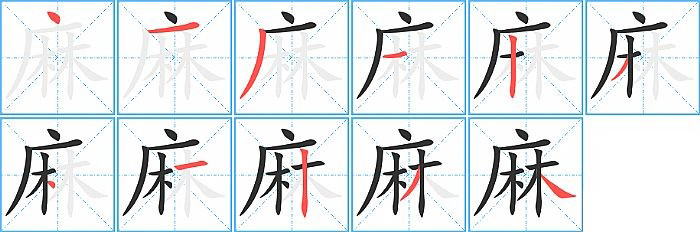 - 问:写"麻"字第9笔是什么笔画?答:竖【