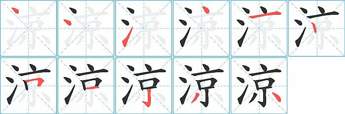 - 问:写"涼"字第10笔是什么笔画?答:撇【
