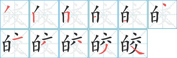 - 问:写"皎"字第10笔是什么笔画?答:撇【