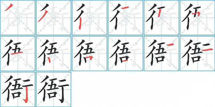 - 问:写"衙"字第12笔是什么笔画?答:横【