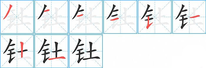 - 问:写"钍"字第8笔是什么笔画?答:横【