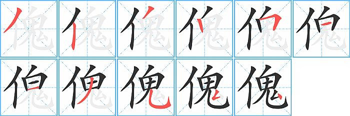 1. 〔傀儡〕a.木偶戏里的木头人;b.喻徒(好工具)有虚名,被人操纵的人或组织,如“傀傀政权”。