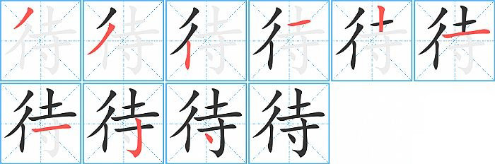 2. 以某种态度或行为加之于人或事物:对待。招待。待遇。待人接物。