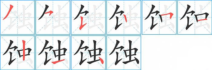- 问:写"蚀"字第8笔是什么笔画?答:横【