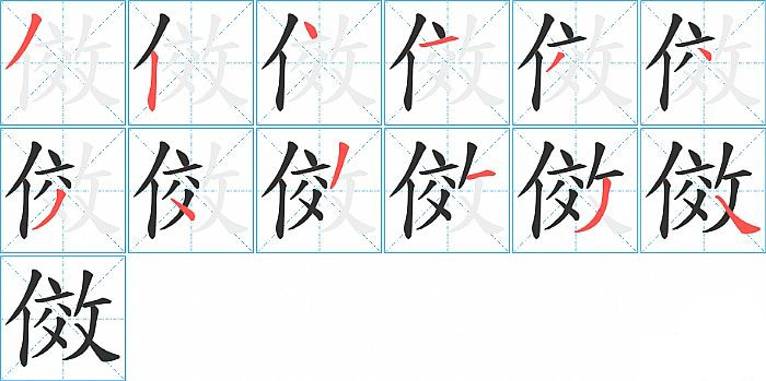 - 问:写"傚"字第12笔是什么笔画?答:捺【