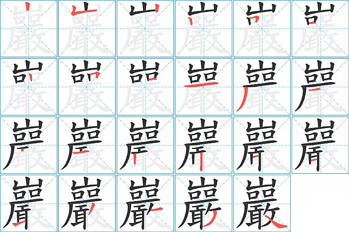 - 问:写"巖"字第22笔是什么笔画?答:捺【