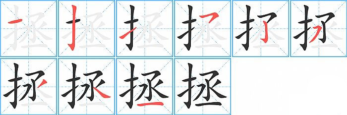 - 问:写"拯"字第8笔是什么笔画?答:捺【