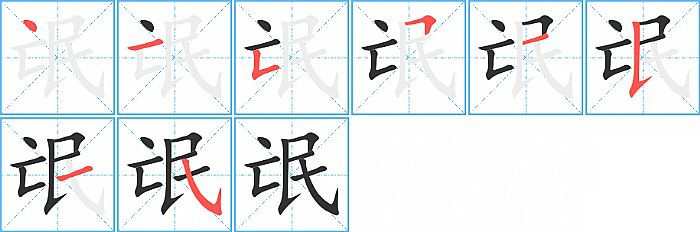 点、横、竖折/竖弯、横折、横、竖提、横、斜钩