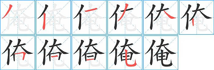 - 问:写"俺"字第10笔是什么笔画?答:竖弯钩【