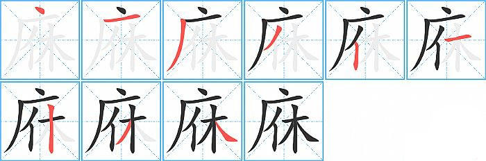 - 问:写"庥"字第8笔是什么笔画?答:撇【