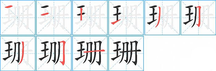 - 问:写"珊"字第9笔是什么笔画?答:横【
