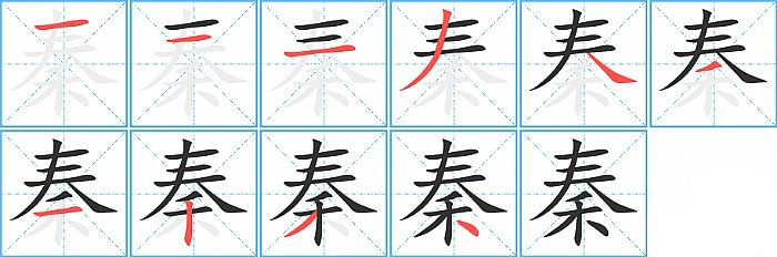- 问:写"秦"字第8笔是什么笔画?答:竖【
