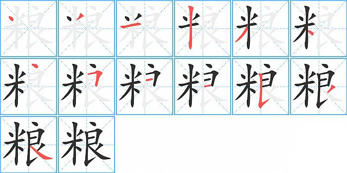 - 问:写"粮"字第12笔是什么笔画?答:撇【