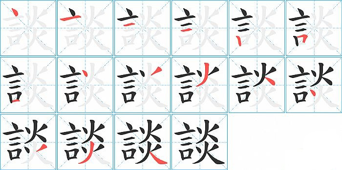- 问:写"談"字第13笔是什么笔画?答:撇【
