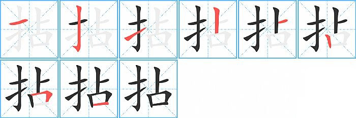 - 问:写"拈"字第7笔是什么笔画?答:横折【