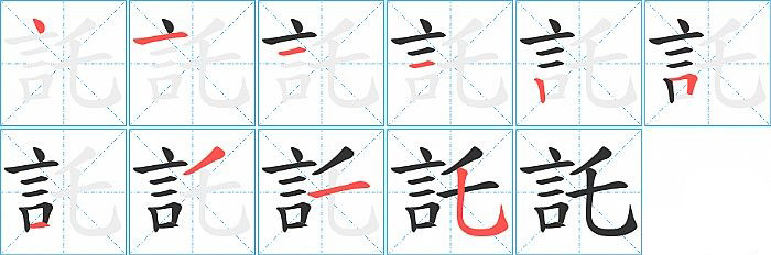 - 问:写"託"字第10笔是什么笔画?答:竖弯钩【