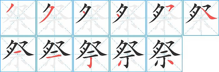 - 问:写"祭"字第10笔是什么笔画?答:撇【
