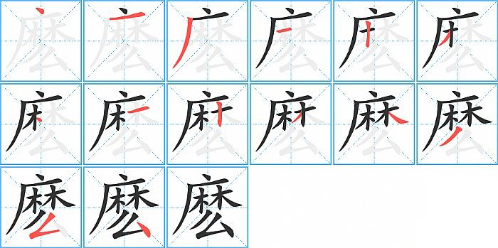 - 问:写"麽"字第12笔是什么笔画?答:撇【
