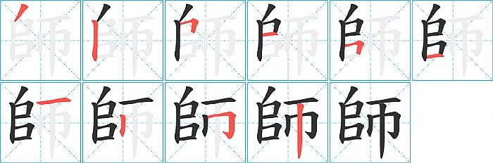 - 问:写"師"字第10笔是什么笔画?答:竖【