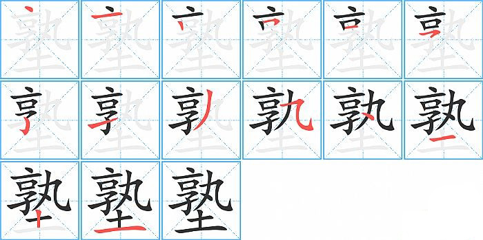 - 问:写"塾"字第12笔是什么笔画?答:横【