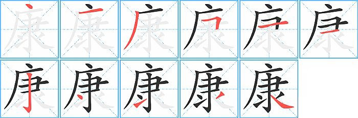 - 问:写"康"字第10笔是什么笔画?答:撇【