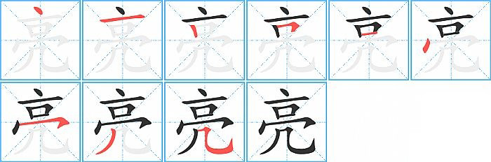 - 问:写"亮"字第2笔是什么笔画?答:横【