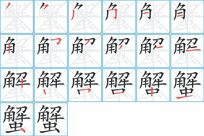 - 问:写"蟹"字第16笔是什么笔画?答:横【