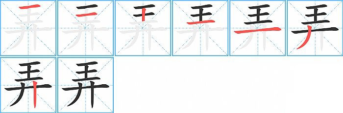 1. 玩耍,把玩:摆弄。玩弄。弄臣(帝王所亲近狎昵的臣子)。弄潮儿。戏弄。弄瓦(“瓦”是原始的纺锤,古代把它给女孩子玩,意为生女儿)。弄璋(“璋”是一种玉器,古代把它给男孩子玩。意为生儿子)。
